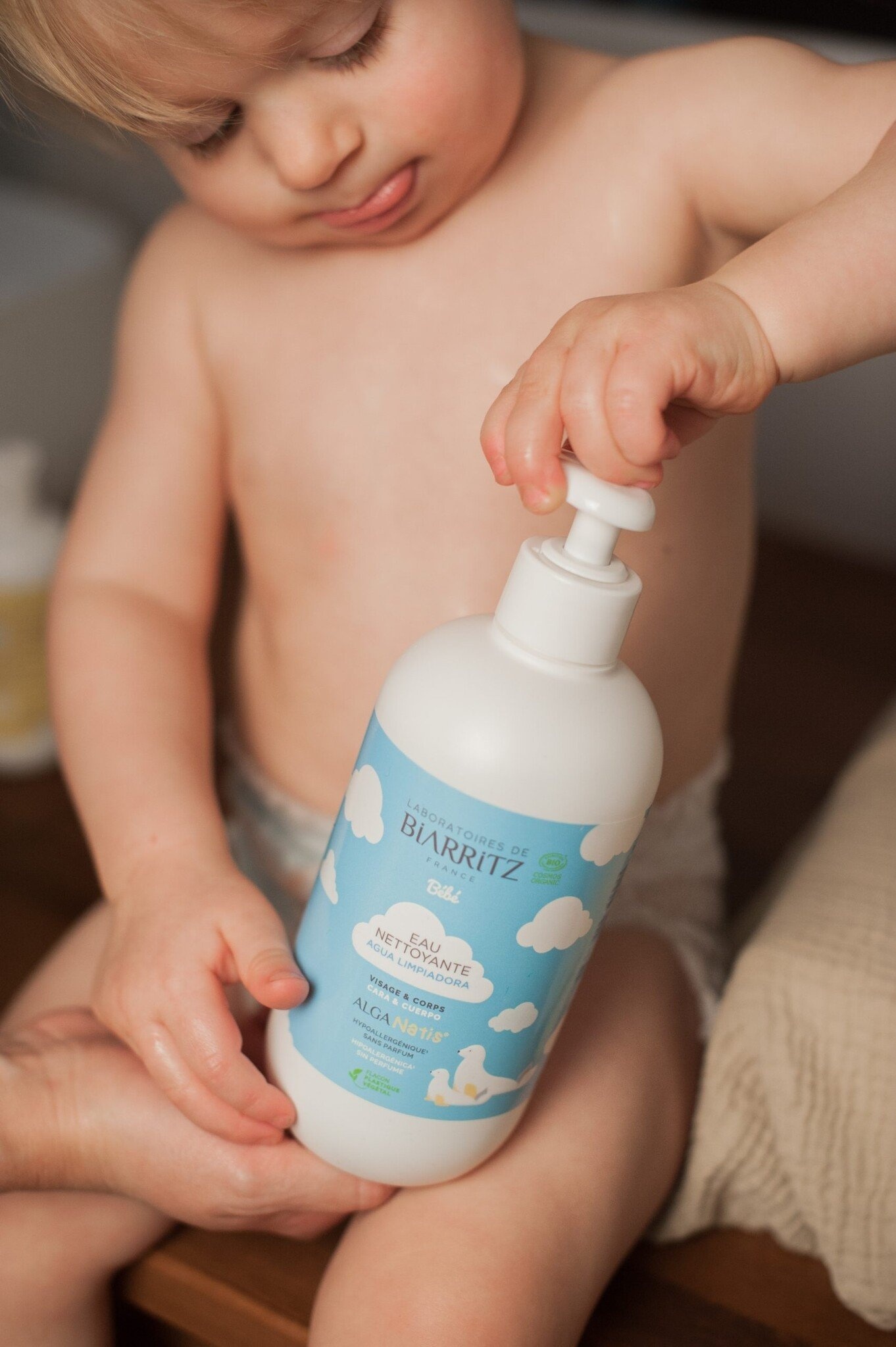 Het reinigingswater is geschikt voor het reinigen van het gezicht, het lichaam, de handen en het luiergebied.