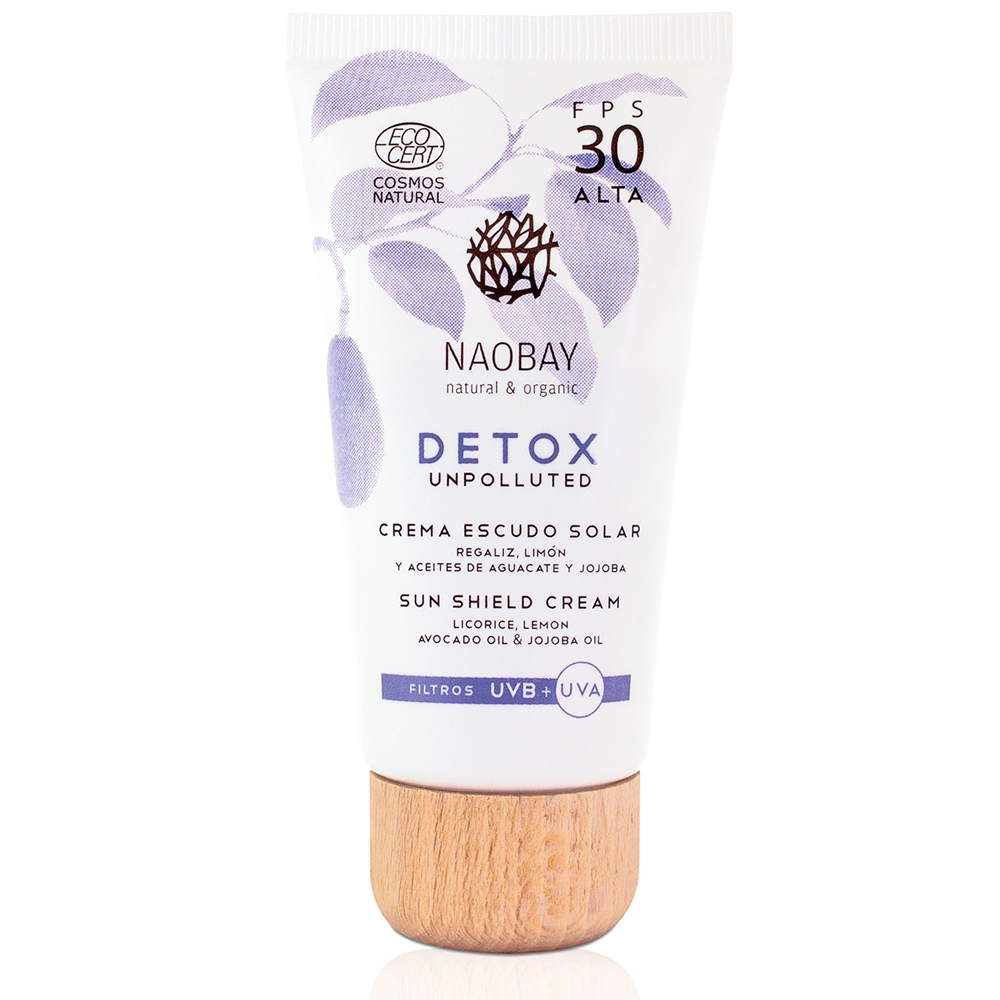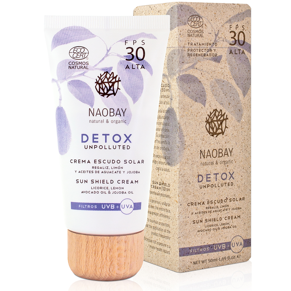 De Detox Sun Shield Cream SPF 30 van Naobay is een echt schild tegen het meest hardnekkige oxidatiemiddel: de zon. Deze geavanceerde emulsie bevat avocado- en jojoba-olie die naast de bescherming van de huid tegen ultraviolette straling, helpt vocht vast te houden.