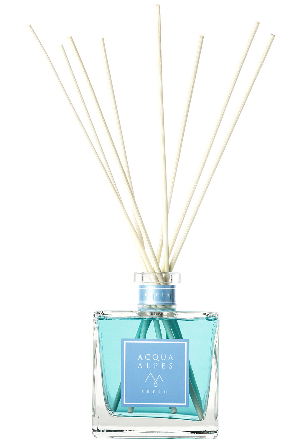De Fresh Home Diffuser. Deze betoverende diffuser vult elke ruimte met een unieke en verkwikkende frisheid. Het is alsof je omhuld wordt door de natuurlijke essenties van kristalhelder water uit de majestueuze Tiroler bergen, gecombineerd met de kleurrijke elegantie van kostbare Alpenstenen. Samen creëren ze een comfortabel klimaat van heldere, pure Alpen- en saffierstromen, met de kracht van een majestueuze blue mountain.