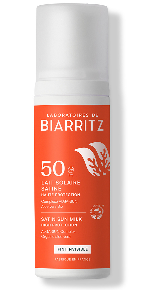De SPF50 zonnemelk biedt onmiddellijke bescherming tegen UVA/UVB-straling dankzij een unieke combinatie van minerale filters en Alga-Gorria®, een gepatenteerd extract van rode algen van de Baskische kust dat vroegtijdige huidveroudering voorkomt.
