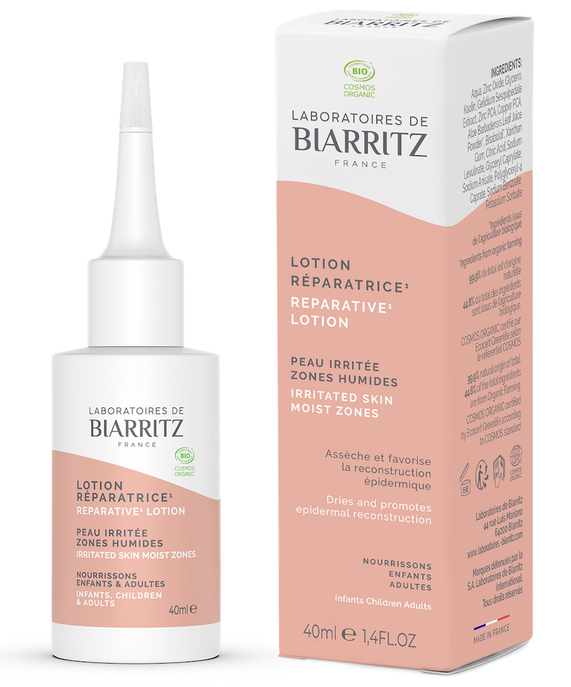 Deze herstellende1 lotion is bedoeld voor toepassing op laesies in vochtige gebieden (huidplooien, sijpelen...). Als de laesie droog is en niet lekt, gebruik dan CICA REPA herstellende1 crème.
