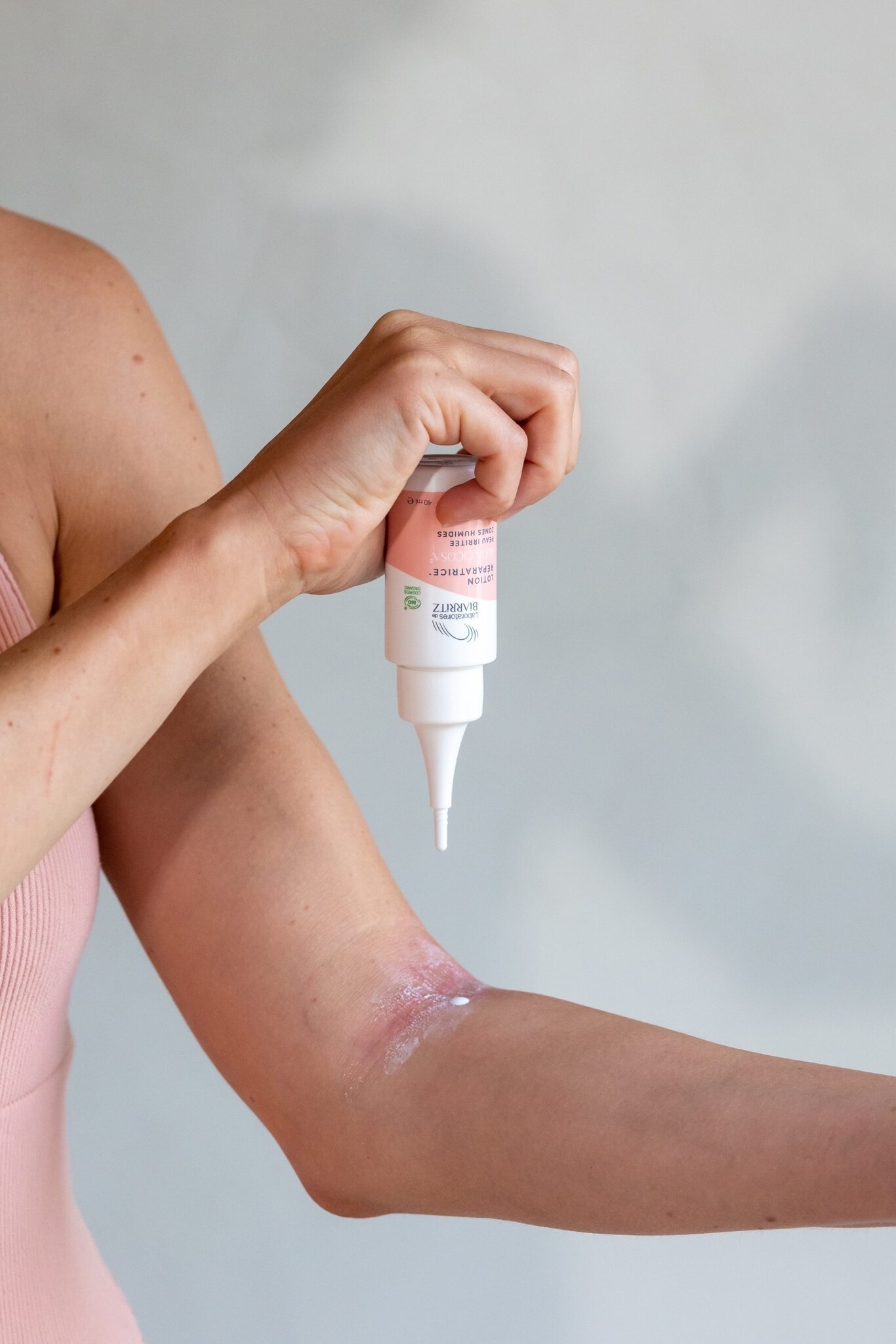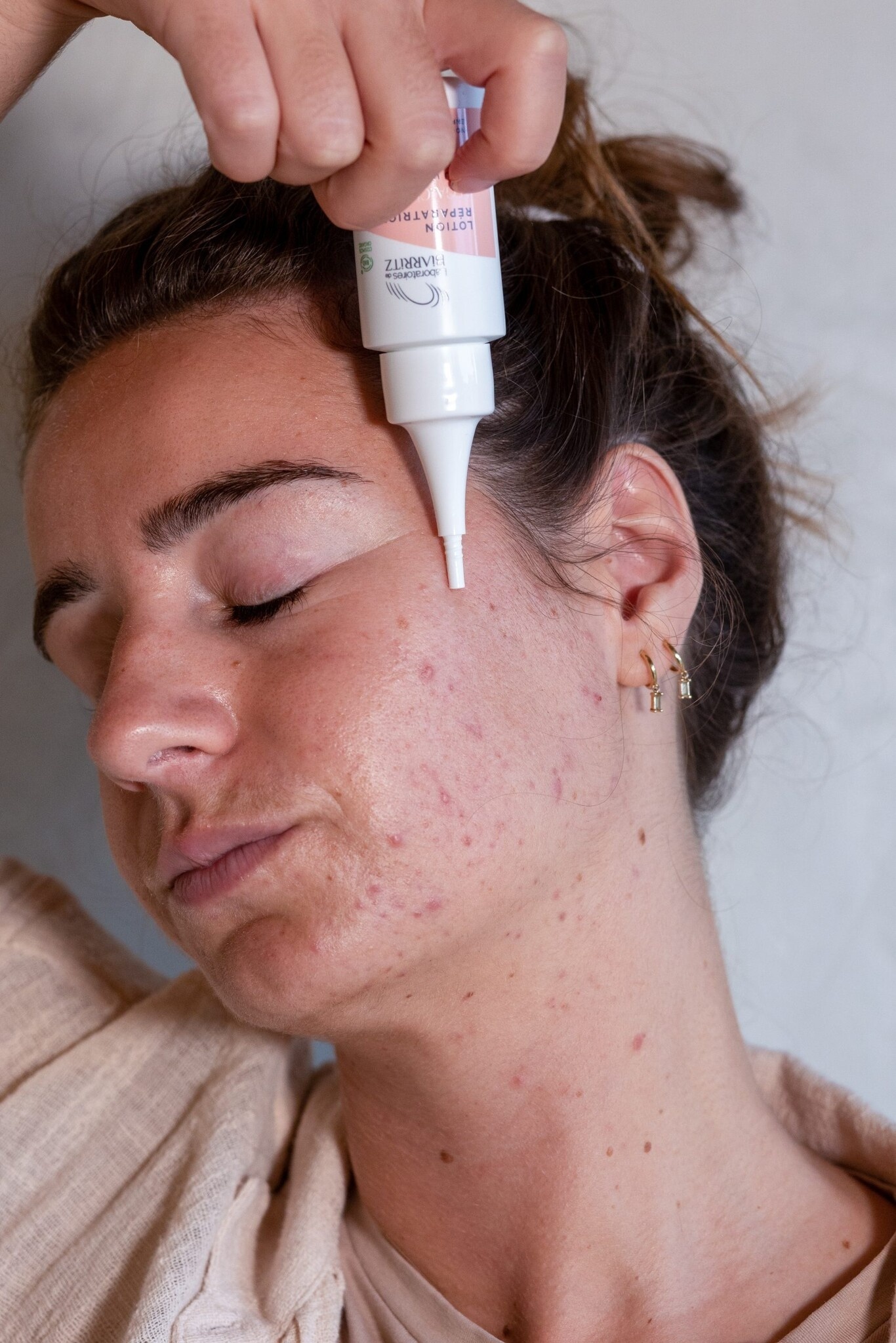 De lotion richt zich op het bevorderen van het herstel van beschadigde huid.