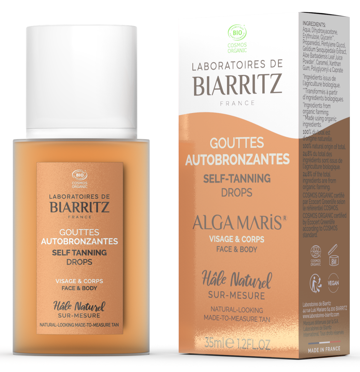 De zelfbruinende druppels van Biarritz zijn geformuleerd zonder toegevoegde geurstoffen.