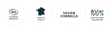 COSMOS ORGANIC certified by ECOCERT Greenlife according to the COSMOS standard.