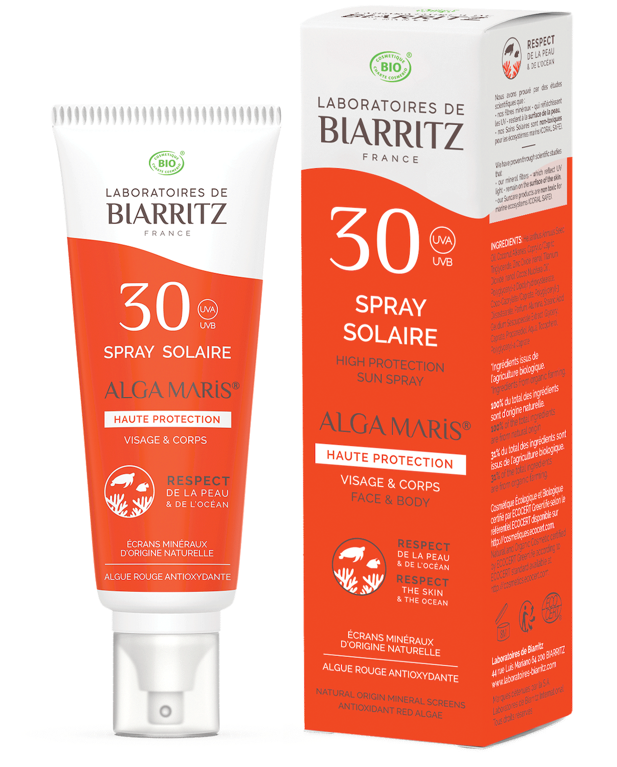 Ervaar de kracht van Suncare, een natuurlijke lijn van zonbeschermingsproducten die je huid effectief beschermt tegen UVA + UVB stralen en vrije radicalen. Verrijkt met biologische zonnebloemolie voor een huidverzorgende en hydraterende werking. Onze SPF30 zonnebrand spray van Biarritz is ontworpen voor het hele gezin en kan al gebruikt worden bij kinderen vanaf 3 jaar oud. Dankzij de waterbestendigheid is het de ideale metgezel voor allerlei activiteiten, met langdurige bescherming en extra hydratatie voor zowel het lichaam als het gezicht.