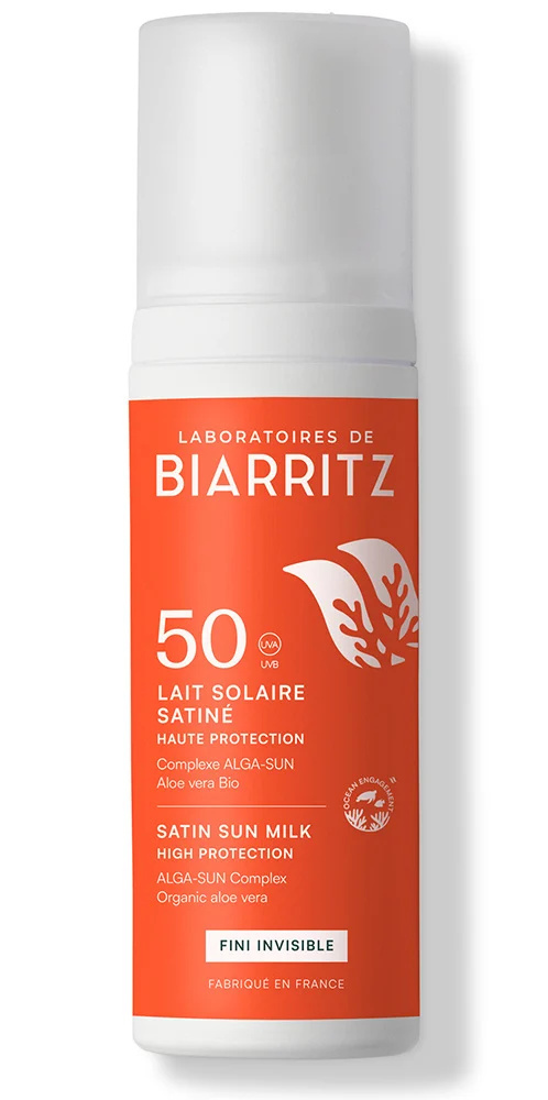 De SPF50 zonnemelk biedt onmiddellijke bescherming tegen UVA/UVB-straling dankzij een unieke combinatie van minerale filters en Alga-Gorria®, een gepatenteerd extract van rode algen van de Baskische kust dat vroegtijdige huidveroudering voorkomt.