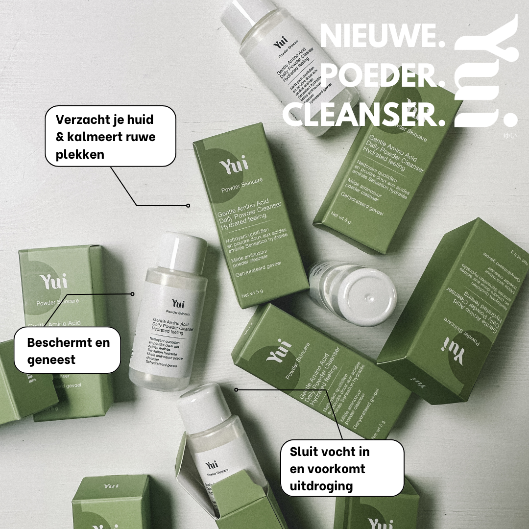 Onze Yui Powder is een milde dagelijkse gezichtsreiniger in poedervorm. Het is de basis van je dagelijkse huidverzorgingsroutine, helpt bij het reinigen, hydrateren en verbeteren van je huid gezondheid.elke.dag.